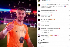 他也在賽后通過社媒曬出自己的慶祝照,并配文:“我們回家并且取得了一場大勝!很開心再次捍衛球門!讓我們繼續前進,巴薩球迷們!????”