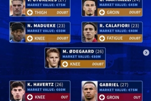 體育資訊11月23日訊 阿森納將在本輪英超焦點戰(zhàn)對陣熱刺,《轉會市場》統(tǒng)計顯示隊內最多可能有8人無法出戰(zhàn)。