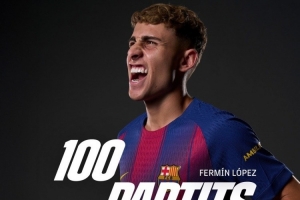 此役是費(fèi)爾明的諾坎普首秀,也是他為巴薩出戰(zhàn)的第100場(chǎng)比賽,巴薩官方社媒曬出海報(bào),祝賀他達(dá)成巴薩百場(chǎng)里程碑。