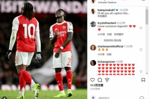 在社交媒體上,薩卡曬出了自己和上演帽子戲法的埃澤賽場同框照,他寫道:大家發揮創意,取個標題吧!
