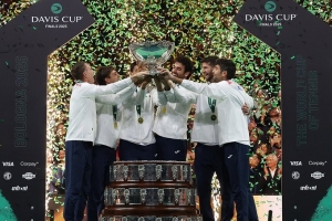 體育資訊11月24日訊 網球戴維斯杯決賽,貝雷蒂尼2-0戰勝布斯塔,科博利2-1戰勝穆納爾,意大利隊斬獲冠軍。