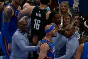 GIF-雷霆開拓者沖突 楊瀚森過來把哈滕勸走