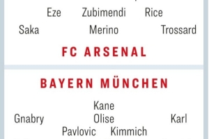體育資訊11月24日訊 拜仁和阿森納在本輪聯(lián)賽各自取得大勝,兩隊也將在周中迎來歐冠榜首之爭,拜仁作客挑戰(zhàn)阿森納。《踢球者》也預(yù)測了雙方首發(fā):