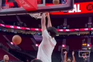賽前,開拓者跟隊記者@yovic曬出視頻,楊瀚森與助教羅尼-伯勒爾連續對抗熱身,籃下終結連續暴扣,勾手也連續命中。