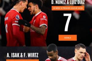 今年夏窗利物浦花費1.45億歐元+1.25億歐元簽下兩大新援伊薩克和維爾茨,但12輪英超過后,兩人顆粒未收,只有伊薩克在聯賽杯中打進一球。