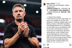 體育資訊11月24日訊 中國(guó)香港代表隊(duì)今日官方宣布,球隊(duì)主教練阿什利·韋斯特伍德下課。