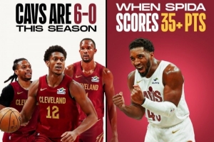 據統計,這是米切爾本賽季至今第6次單場至少砍下35分,在這6場比賽中,騎士隊保持全勝。而騎士本賽季的戰績則是12勝6負。