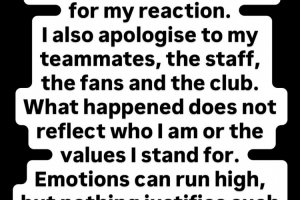 “發生的事情并不能反映我的為人,也不能反映我所代表的價值觀。情緒激動在所難免,但沒有什么理由可以為這種行為辯護,我保證這種事不會再發生了。”