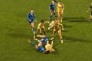 體育資訊11月25日訊 《每日郵報》報道,在水晶宮女足與萊斯特城女足的比賽中,一名水晶宮女足球員掐住對手脖子將其猛摔在地,這一幕讓球迷震驚不已。