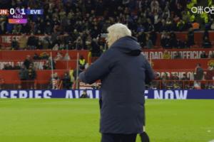 英超第12輪,埃弗頓客場少打一人1-0擊敗曼聯,主帥莫耶斯賽后慶祝