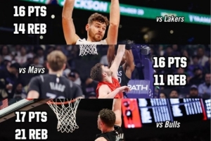賽后,開拓者官推曬出克林根近五場兩雙的數據圖,并寫道:“得分?籃板?他全都要。克林根最近的表現(如圖),包括五次兩雙。”