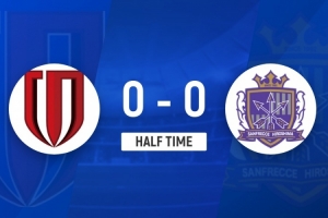 傷停補時1分鐘。上半場比賽結束,成都蓉城0-0廣島三箭。