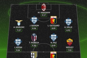 中場(chǎng):杰登·阿代(科莫,9.04分)、托馬索·波貝加(博洛尼亞,9.30分)、尼科·帕斯(科莫,8.49分)、韋斯利·法蘭卡(羅馬,7.92分)