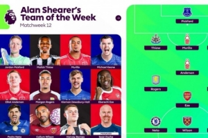 體育資訊11月26日訊 英超第12輪戰罷,阿蘭·希勒評本輪最佳陣容,皮克福德、埃澤、摩根·羅杰斯在列。