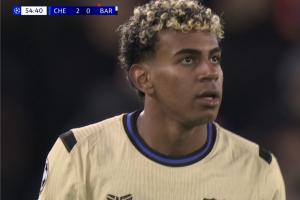 體育資訊11月26日訊 歐冠聯賽階段第5輪,切爾西主場迎戰巴塞羅那,比賽第55分鐘,埃斯特旺連過多人爆射得手,切爾西2-0領先,隨后鏡頭立刻給到了亞馬爾。
