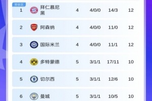 體育資訊11月26日訊 歐冠第5輪首日比賽結束,最新積分榜情況出爐。