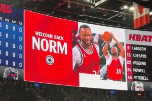 體育資訊11月4日訊 快船主場迎戰熱火,首節暫停期間,球隊播放了致敬舊將鮑威爾的視頻,鮑威爾也鼓掌致謝。