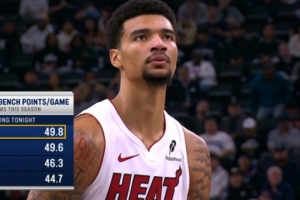 轉播方給出數據:今日比賽之前,熱火本賽季替補場均共得49.8分,聯盟第一。