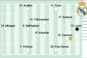 西班牙媒體《阿斯報(bào)》預(yù)測(cè)了皇馬此役的首發(fā)陣容,姆巴佩領(lǐng)銜,維尼修斯、迪亞斯、阿諾德在列。