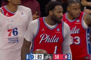 終結(jié)可以!恩比德內(nèi)線單打 后仰中投命中率隊(duì)擴(kuò)大領(lǐng)先