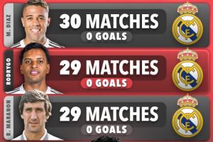 體育資訊11月26日訊 皇馬前鋒羅德里戈本賽季狀態低迷,出戰14場比賽1球未進。目前羅德里戈俱樂部連續進球荒已經長達29場,排名皇馬隊史第2,僅次于30場球荒的馬里亞諾。羅德里戈上次代表皇馬取得進球,還是今年3月對陣馬競的比賽。