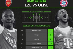 體育資訊11月26日訊 拜仁和阿森納即將迎來歐冠榜首之爭,兩位前水晶宮球員奧利塞和埃澤當前狀態火熱。whoscored也對比了兩人本賽季聯賽+歐冠的場均關鍵數據,后者全面占優。