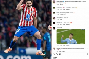 本場比賽阿爾瓦雷斯破門,賽后他也在個人社媒曬出本場慶祝照片,配文寫道:“球隊拿出很棒的表現,取得重要的三分!”