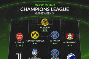 體育資訊11月27日訊 WhoScored根據(jù)球員的評分列出歐冠第5輪最佳陣容,姆巴佩領(lǐng)銜。