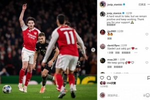 斯坦尼西奇社媒曬出比賽照片,配文:“這是一個難以接受的結果,但我們依然保持積極的態度,繼續努力。感謝大家的支持?!?/p>