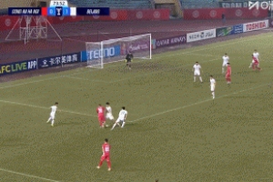 體育資訊11月27日訊 國安vs河內第75分鐘,張玉寧大單刀連射兩腳沒進!