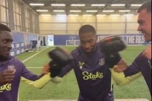 埃弗頓前鋒蒂爾諾·巴里在社媒曬出視頻,蓋耶與基恩手戴拳套,在裁判貝托的見證下,進行了一場“和好拳擊賽”。