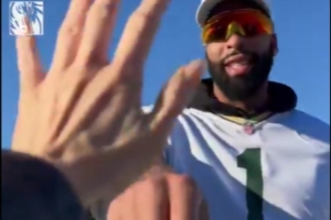 空中作業(yè)!杰倫·布朗送拋傳 奎塔空接得手可惜加罰不中