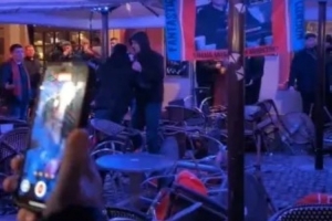 現場畫面顯示,這些球迷在加約集市廣場投擲咖啡館座椅、互相斗毆,導致周邊商鋪窗戶被砸碎,玻璃遍地,附近酒吧被迫緊急停業。