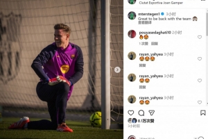 長期因傷缺席的巴薩門將特爾施特根已經回歸訓練場,朝著復出邁出堅實一步,他在社交媒體上曬出訓練照片,配文:“很高興回歸球隊。”