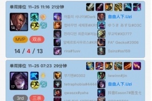 體育資訊11月29日訊 根據排位統計小程序顯示,Uzi在25日之后就未登上韓服賬號。