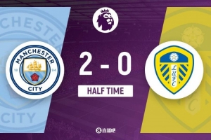 半場結束,曼城暫2-0利茲聯。