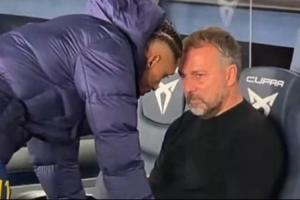 盡管主場取勝,但巴薩主帥弗里克對球隊本場比賽的表現似乎并不完全滿意。終場哨響后,DAZN的轉播鏡頭拍到弗里克一臉嚴肅地留坐在替補席上,與本場表現出色,被換下的拉菲尼亞交換著意見。交流過程中,弗里克神情嚴肅,幾次搖頭。
