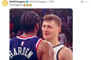 掘金自媒體曬出上賽季季后賽布勞恩盯著哈登冷笑的圖,并寫道:“快船??????”