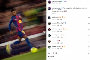 28歲的拉什福德本賽季從曼聯(lián)租借加盟巴薩,各項(xiàng)賽事18場(chǎng)已貢獻(xiàn)6球8助攻。
