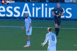 體育資訊11月30日訊 英超第13輪,曼聯(lián)客戰(zhàn)水晶宮,第18分鐘,姆伯莫不滿裁判判罰,憤怒砸球吃到黃牌!