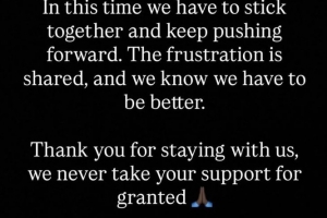 中場帕佩·薩爾在賽后通過社媒發文向球迷們致歉:“在這段時期,我們必須團結一致,繼續前進。我們同樣感到沮喪,并且深知我們必須做得更好。”