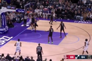 亞當斯單手帥氣抓帽 推反擊后接杜蘭特分球轉身霸王暴扣