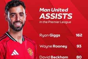 B費曼聯生涯英超助攻數已經達到56次,超越名宿斯科爾斯,以下為曼聯隊史英超助攻榜: