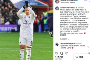 利馬寫道:“很久沒有做我最熱愛的事情了,最好的回歸方式就是以一場至關重要的勝利重返球場。”