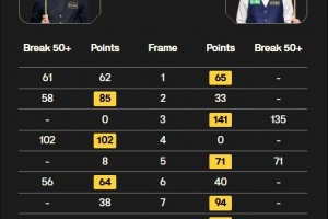 希金斯和羅伯遜單局打了37分鐘后一起去廁所,該局最終打了56分鐘