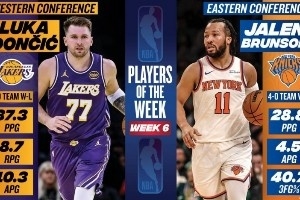 周最佳出爐:東契奇場均轟37.3分8.7板10.3助 布倫森率隊(duì)4勝0負(fù)