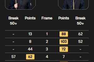 斯科特·唐納森打出兩桿50+(62、52),馬克·艾倫打出單桿57分,上半場斯科特·唐納森3-1領先馬克·艾倫,中場休息后斯科特·唐納森連勝三局,最終6-1戰勝馬克·艾倫,晉級16強。