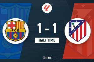 半場結束,巴薩暫1-1馬競。