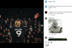 他也在賽后通過社媒曬出自己進球后的慶祝照,并配文:“足球帶我去到我從未想象過的地方……??????”