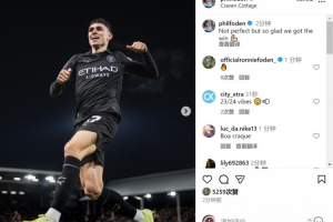 福登社媒曬出慶祝進球的照片,并寫道:“并不完美,但很高興我們能取得勝利。”